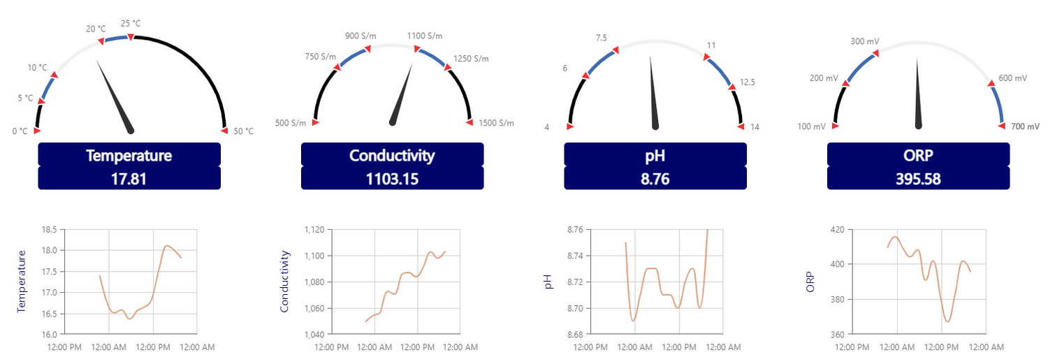 Our inline probe will give you real-time access to the following water quality parameters; pH, ORP, Temperature and Conductivity.